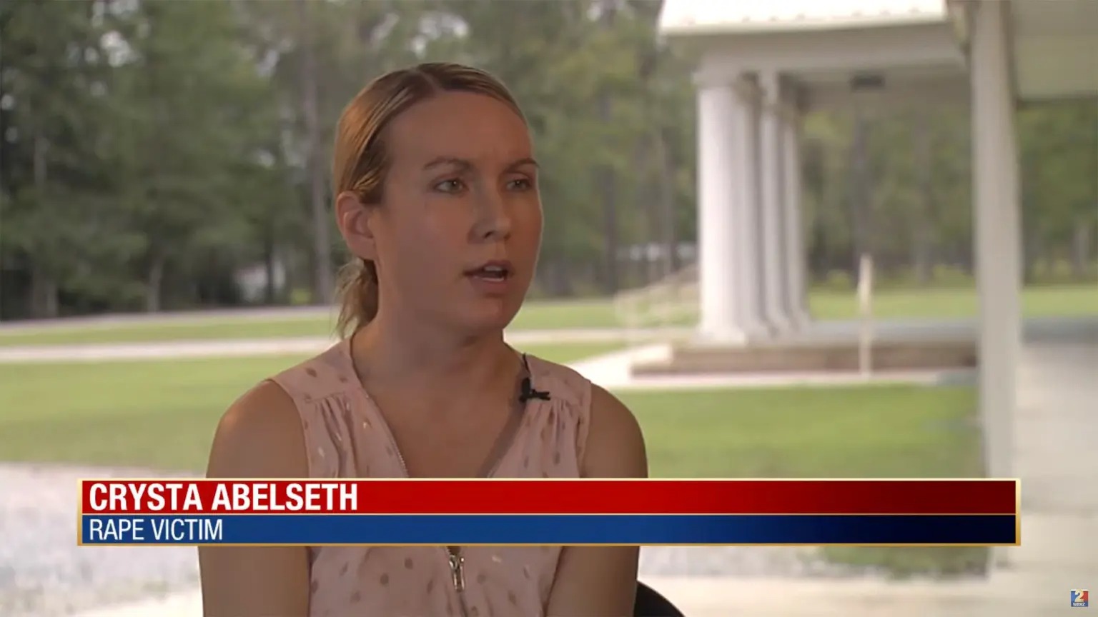Crysta Abelseth kể rằng cô bị cưỡng hiếp năm 16 tuổi khi một người đàn ông gần gấp đôi tuổi cô hứa sẽ chở cô về nhà từ một nhà hàng địa phương sau một đêm đi chơi với bạn bè.