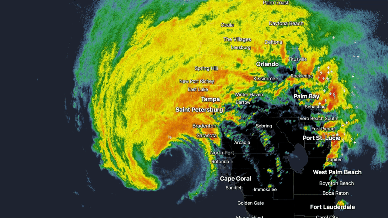 Lượng mưa lớn và gió cực kỳ nguy hiểm ở Milton đang tấn công vùng Vịnh Tampa