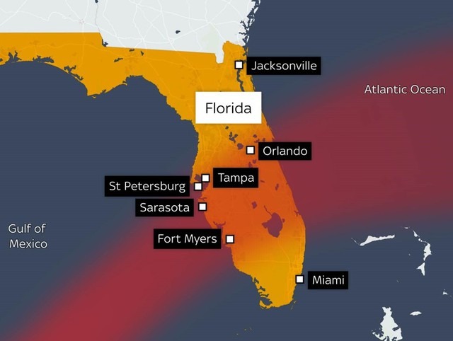 Milton sẽ vẫn là cơn bão khi di chuyển qua Florida vào đêm qua và sáng thứ năm, với mức độ nguy hiểm lên tới hàng trăm dặm tính từ tâm bão.
