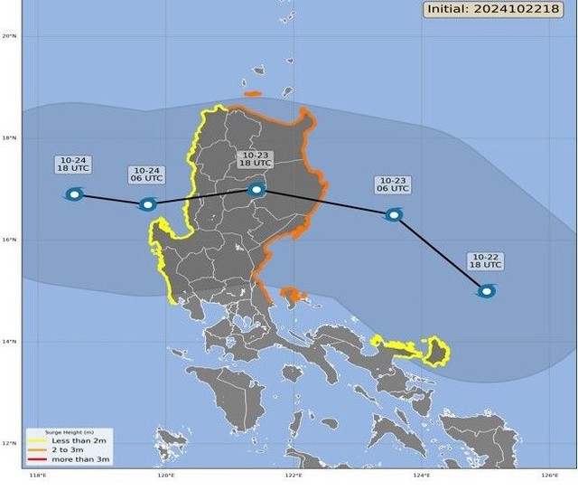Ngày 23/10, người dân ở một số khu vực trên đảo Luzon được khuyến cáo tránh xa bờ biển vì bão có thể gây ra triều cường trong vòng 48 giờ tới. "Có khả năng xảy ra ngập lụt do nước biển dâng cao cùng với sóng lớn ở các cộng đồng ven biển thấp" - PASAGA cảnh báo.