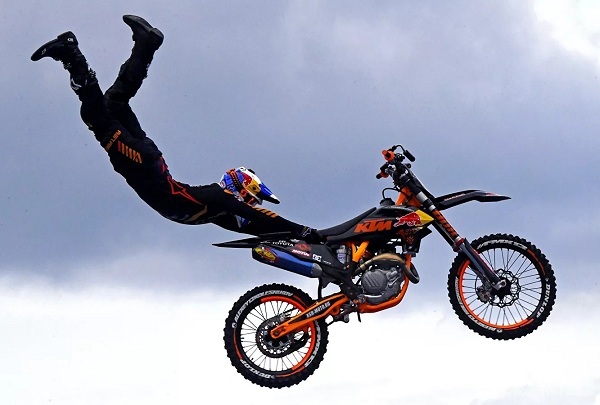 Màn trình diễn của đội đua mô tô tự do FMX13 tại lễ hội Vladivostok 2020.