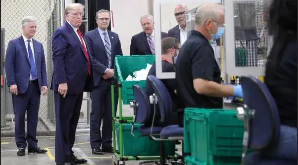 Theo Bloomberg, trong chuyến thăm tới nhà máy tại bang Arizona chuyển sản xuất khẩu trang N95 cho nhân viên y tế, ông Trump đeo kính bảo hộ nhưng không đeo khẩu trang. Trước đó, tổng thống Mỹ từng nói ông "không cần đeo khẩu trang và có lẽ sẽ không làm vậy".