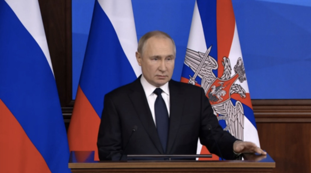 Theo hãng tin RT, Tổng thống Putin tuyên bố như vậy trong một bài phát biểu tại cuộc gặp các quan chức quốc phòng cấp cao của đất nước.