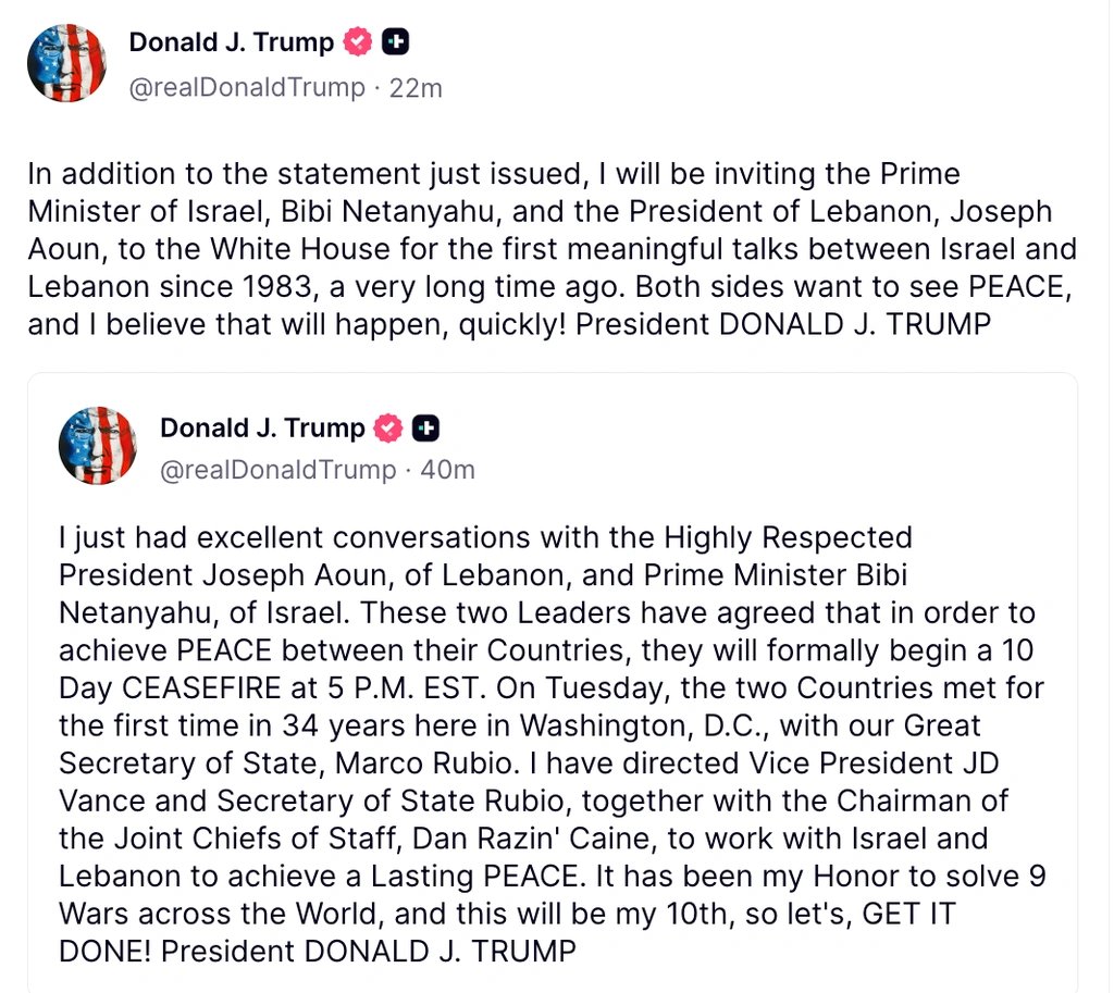 Trước những bất đồng sâu sắc, Tổng thống Trump đã trực tiếp tham gia điều phối thông qua các cuộc điện đàm quan trọng với Thủ tướng Netanyahu và Tổng thống Lebanon Joseph Aoun.