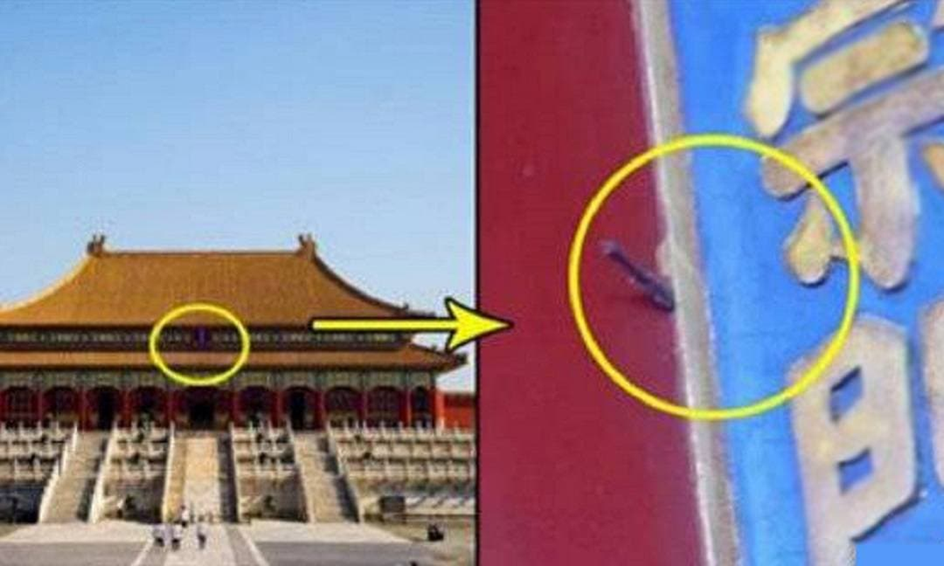 2. Mũi tên trên tấm bảng của Long Tông Môn: Trên Long Tông Môn, lối vào chính của Tử Cấm Thành, có một mũi tên gỉ sét đang gắn trên tấm bảng.