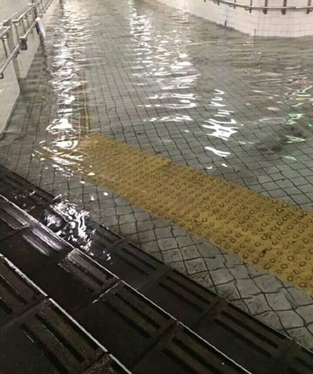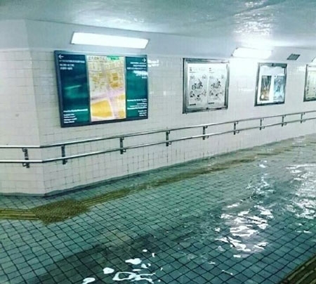 | Bức ảnh chụp cảnh nước lũ trong veo trong một ga tàu ở phía đông Nhật Bản thu hút sự quan tâm của cộng đồng mạng. Ảnh: Hongkongfp. |