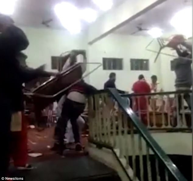 Đoạn video do một nhân chứng phía ngoài quay lại cho thấy các vị khách dùng mọi thứ từ tay không đến bất đũa, bàn ghế...để đánh nhau.