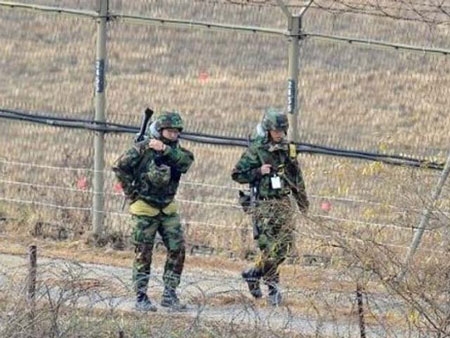 Binh sĩ Hàn Quốc tuần tra dọc biên giới Triều Hàn. |