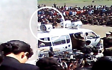 | Hai người đàn ông (khoanh tròn) bị xét xử công khai trong phiên tòa ở Triều Tiên ngày 4/9. Ảnh minh họa: Telegraph |