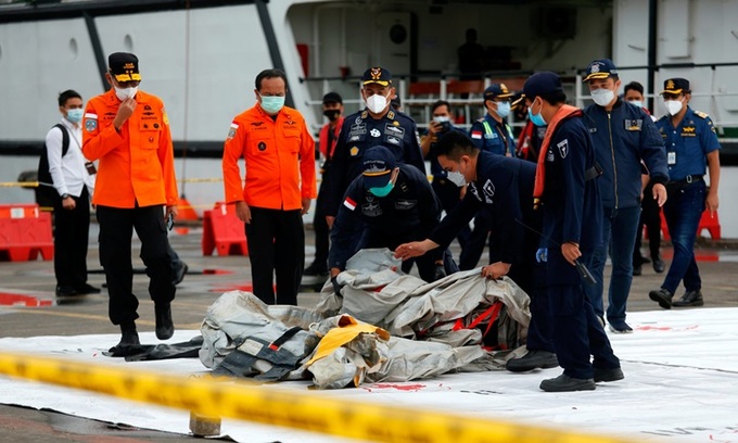 Quan chức Hải quân Indonesia Wahyudin Arif nói rằng họ đã tìm thấy các mảnh thân máy bay có chiều dài khoảng một mét, một phần lốp và các bộ phận thi thể người. Các mảnh thi thể đã được đưa đến bệnh viện cảnh sát để nhận dạng.