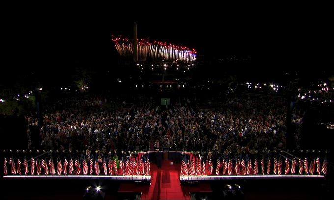 Bầu trời thủ đô Washington sau đó rực sáng với màn bắn pháo hoa nhiều màu sắc, trong khi một buổi biểu diễn âm nhạc nhỏ cũng diễn ra tại Nhà Trắng để kết thúc sự kiện.