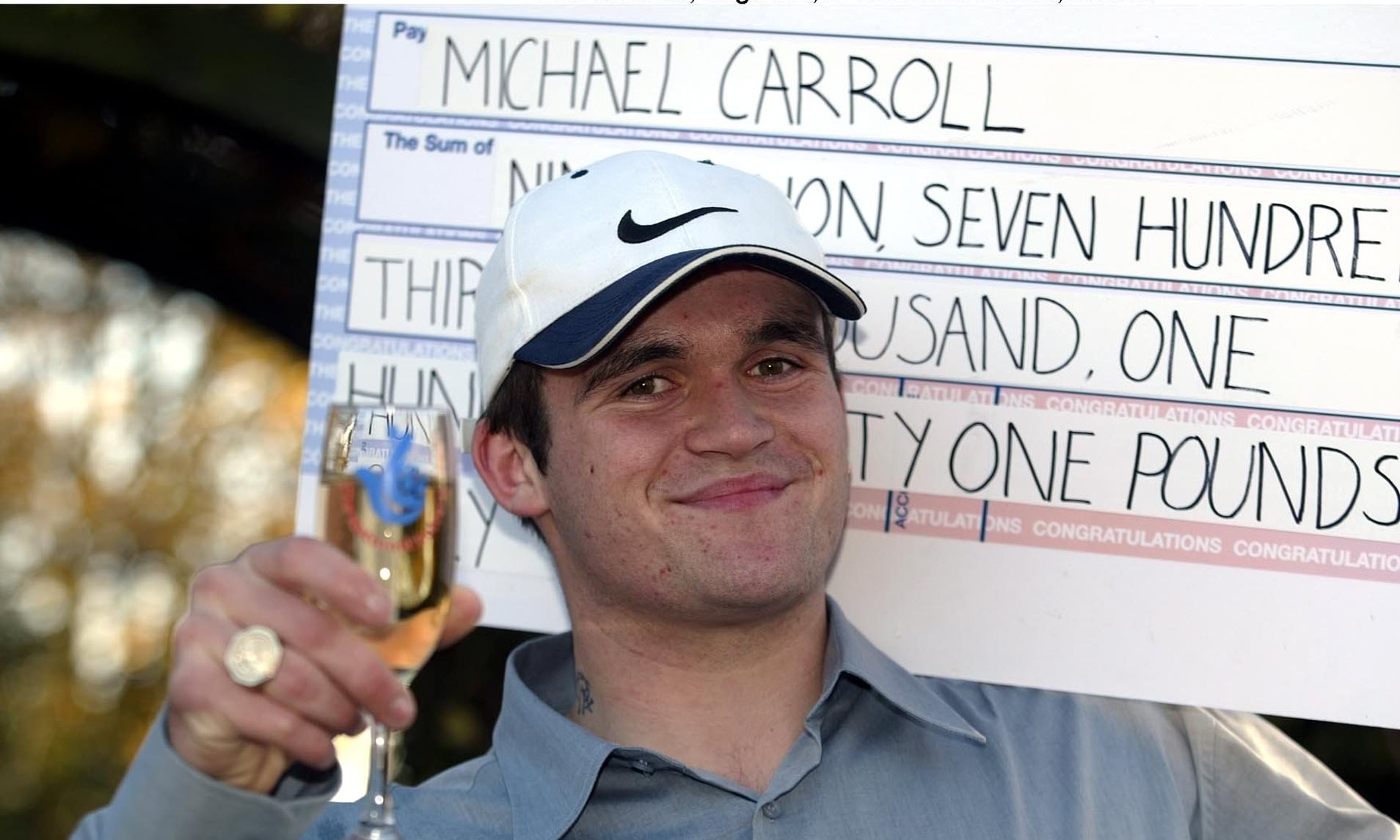 Truyền thông Anh cho biết, vào năm 2002, Michael Carroll, 19 tuổi, đã mua một tờ vé số với giá 4 bảng Anh (khoảng 200.000 đồng) và trúng độc đắc giá trị 9,7 triệu bảng Anh (khoảng 290 tỷ đồng). Số tiền khổng lồ mà thần may mắn mang lại đã thay đổi hoàn toàn cuộc đời của Michael, nhưng đó không hẳn là một điều tốt.