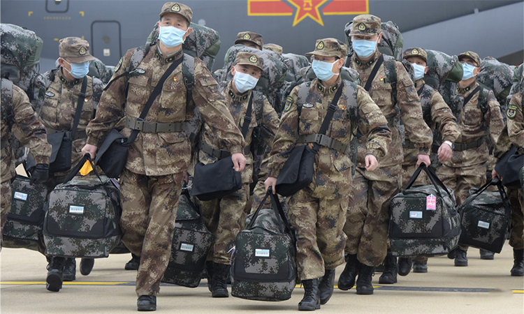 Trung Quốc đã cử ba đội quân y gồm 4.000 người tới Vũ Hán để chống dịch Covid-19, trong đó nhiều người từng có kinh nghiệm dịch SARS và Ebola. Bệnh viện dã chiến Hỏa Thần Sơn với 1.000 giường hiện do 1.400 lính quân y vận hành.