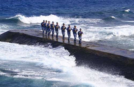 Bài báo của Xinhua cho biết quân lính dậy từ 6h, dành cả ngày để tập luyện vũ khí và diễn tập. Ban đêm, họ thay phiên nhau đứng gác. Nhiệm vụ của lính đồn trú ngày một khó khăn hơn, bởi "nhiều tàu không xác định thỉnh thoảng đến gần trong nhiều ngày". Những lúc đó, "quân lính phải ra xua đuổi".
