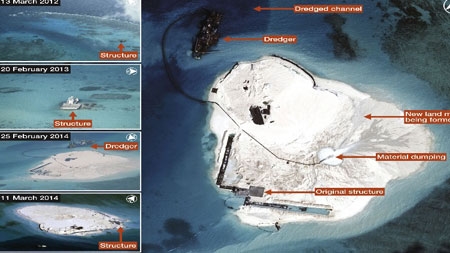 Trong nhiều tháng qua, nhiều quốc gia láng giềng và dư luận quốc tế đã lên tiếng phản đối mạnh mẽ hoạt động bồi đắp, biến các bãi đá ngầm thành đảo nhân tạo của Trung Quốc trong khu vực tranh chấp ở Biển Đông.