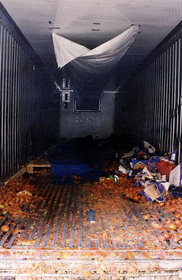 Khi cảnh sát đến hiện trường và mở cửa container, họ bị sốc khi phát hiện 54 người đàn ông và 4 người phụ nữ đã chết nhưng có 2 người đàn ông trẻ đã sống sót một cách kỳ diệu. Hai người này báo cáo với nhân viên bệnh viện rằng họ đã cố cào vào thành container.