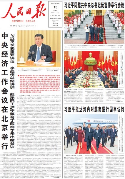 Trước đó, trong ngày 12/12, bài viết của Tổng Bí thư, Chủ tịch Tập Cận Bình đăng trên Báo Nhân Dân của Việt Nam đã được truyền thông Trung Quốc đưa trang trọng.