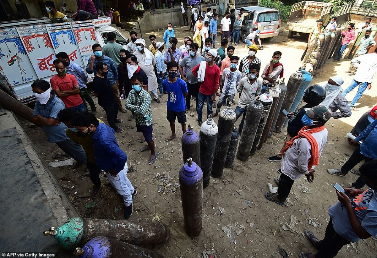 Số lượng bệnh nhân Covid-19 tăng quá nhanh ở Ấn Độ khiến nhiều người rơi vào tình trạng phải thở bình oxy mới sống được. Thảm kịch nằm ở chỗ, nguồn cung oxy đang khan hiếm, nhiều bệnh nhân không thể chờ được và đã tử vong.