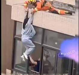 Những nhân viên cứu hộ đứng ở tầng dưới nhanh chóng đưa tay ra cửa sổ để kéo cô vào. Một nhân viên tên Lý Minh trong lúc cứu hộ đã vô tình kéo rơi quần cô gái, nhưng anh không cảm thấy ngại mà nhanh chóng bế cô vào trong.