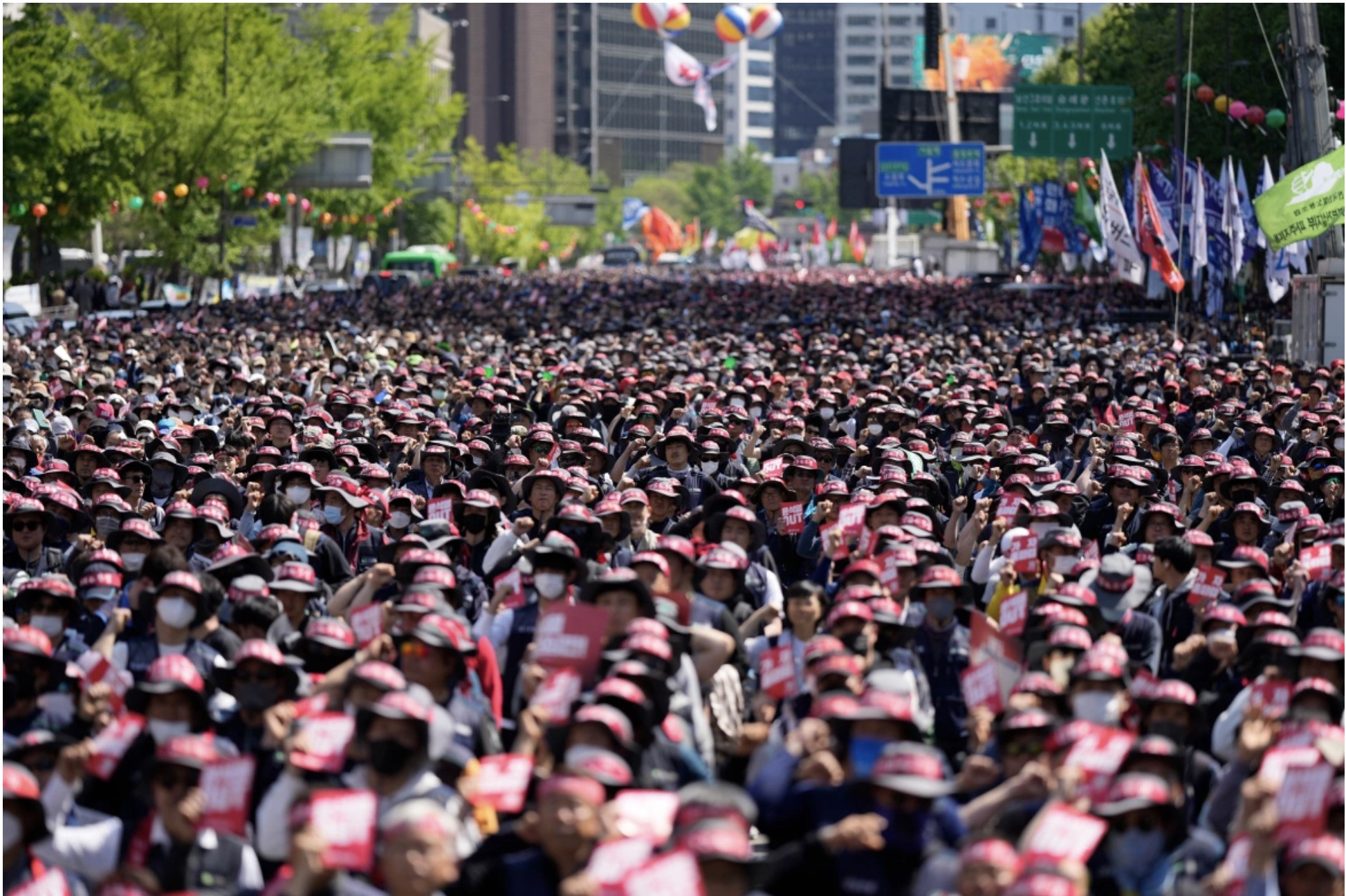 Tại Hàn Quốc, hàng chục nghìn người đã tham gia các cuộc tuần hành khác nhau được tổ chức vào ngày 1/5. Một nhà hoạt động ở thủ đô Seoul tuyên bố trên bục phát biểu: "Giá cả mọi thứ đã tăng, trừ lương của chúng tôi. Tăng mức lương tối thiểu cho chúng tôi. Giảm giờ làm cho chúng tôi".