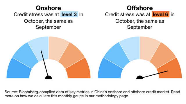 Theo China Credit Tracker của Bloomberg, thị trường trái phiếu nước ngoài 870 tỷ USD là nơi có diễn biến căng thẳng nhất. Trong khi đó, thị trường trong nước lại khá bình lặng. Điều này có thể lý giải tại sao giới chức nước này lại có rất ít động thái để xoa dịu thị trường.