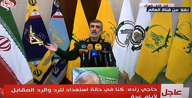 Amir Ali Hajizadeh phát biểu trên truyền hình Iran (Ảnh: Chụp màn hình)