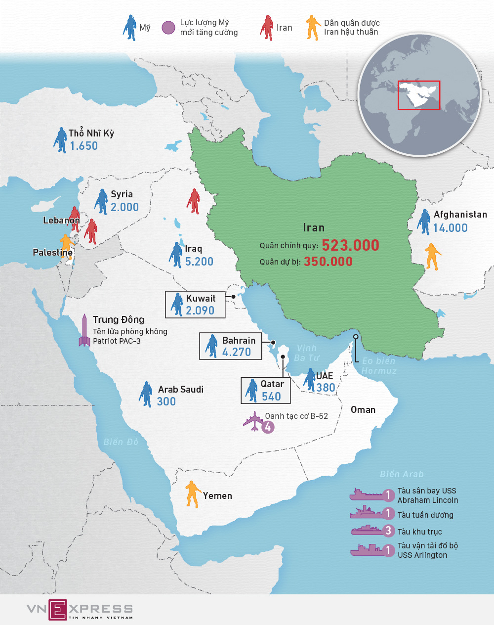 "Tên lửa Iran đủ khả năng vươn tới các mục tiêu quân sự Mỹ, gồm những căn cứ trong khu vực và tàu sân bay USS Abraham Lincoln. Washington biết rõ điều này", Tư lệnh Lực lượng Không gian vũ trụ của Vệ binh Cách mạng Hồi giáo Iran (IRGC) Amir Ali Hajizadeh ngày 21/6 tuyên bố.
