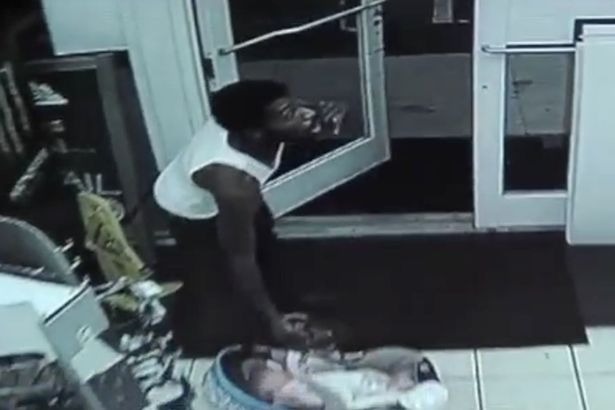 Anh ta đỗ xe ở một trạm xăng khác, và chạy ra cửa sau của chiếc xe hơi rồi cố gắng vật lộn với hai cái cửa sau để giải thoát em bé và bế vào cửa hàng.