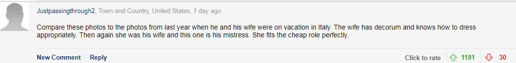 Trước những hình ảnh tình tứ mới nhất của cặp đôi, người dùng mạng tiếp tục dậy sóng. Nhiều người bình luận về nhan sắc thiếu hấp dẫn của Lauren Sanchez và cho rằng ông chủ Amazon đã sai lầm khi bỏ người vợ xinh đẹp để chạy theo người tình ham mê vật chất. Cặp đôi không hề nhận được sự ủng hộ của cộng đồng mạng.