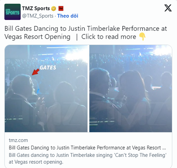 Trong 1 sự kiện có sự tham gia của nhiều ngôi sao, Bill Gates và bạn gái Paula Hurd ngẫu hứng nhún nhảy theo bài hát của Justin Timberlake. Nổi tiếng là người nghiêm túc và có vẻ hướng nội, song hành động của Bill đã khiến nhiều người bất ngờ. Những người có mặt xác nhận rõ rằng cặp đôi thực sự rất tâm đầu ý hợp. Trong 1 video do TMZ đăng tải, Gates kéo Hurd lại gần và chủ động ôm bạn gái khi 2 người hòa mình vào điệu nhạc. Dân tình rất thích thú với phong thái sôi nổi và vô tư của tỷ phú nổi tiếng.