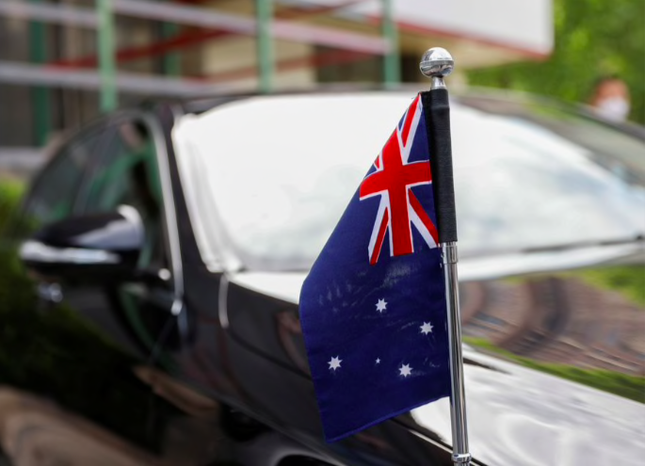Cờ Úc trên xe của Đại sứ Úc tại Trung Quốc Graham Fletcher ngày 27/5/2021. (Ảnh: Reuters)