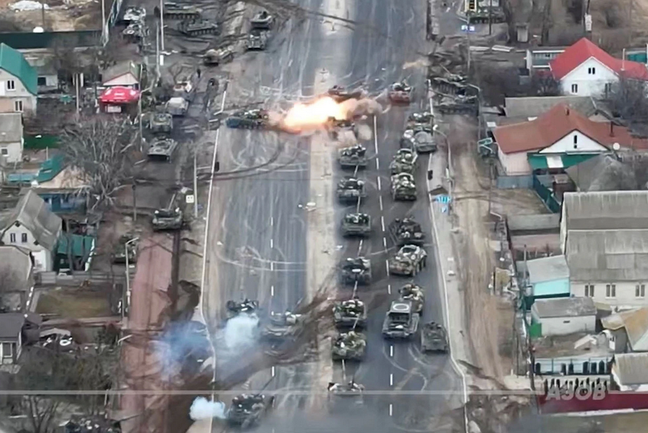 Các chuyên gia quân sự cho rằng video là đáng tin cậy và cho thấy chiến thuật gây ngạc nhiên của các lực lượng Nga. Hơn 20 xe tăng và xe thiết giáp đã xuất hiện ở một con đường lớn gần thành phố thủ đô Kiev.