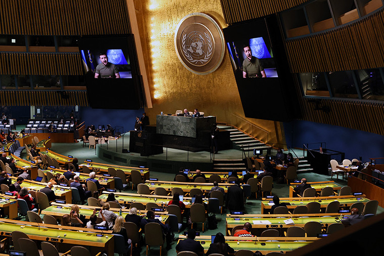 Theo Guardian, trong ngày 21/9 (giờ địa phương), Tổng thống Ukraine Volodymyr Zelensky đã có bài phát biểu trực tuyến tại kỳ họp thứ 77 của Đại hội đồng Liên Hợp Quốc. Trong bài phát biểu khoảng 5 phút của mình, ông Zelensky kêu gọi cộng đồng quốc tế áp dụng "Công thức 5 điểm" để đảm bảo hòa bình và an ninh tại Ukraine.