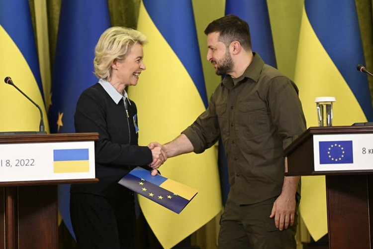 Trang President.gov.ua cho biết, Tổng thống Ukraine Volodymyr Zelensky đã có cuộc điện đàm đầu năm với Chủ tịch Ủy ban châu Âu (EC) Ursula von der Leyen trong đêm 2/1 và “đạt sự nhất trí về động lực hợp tác giữa Kiev và EU trong năm 2023”.