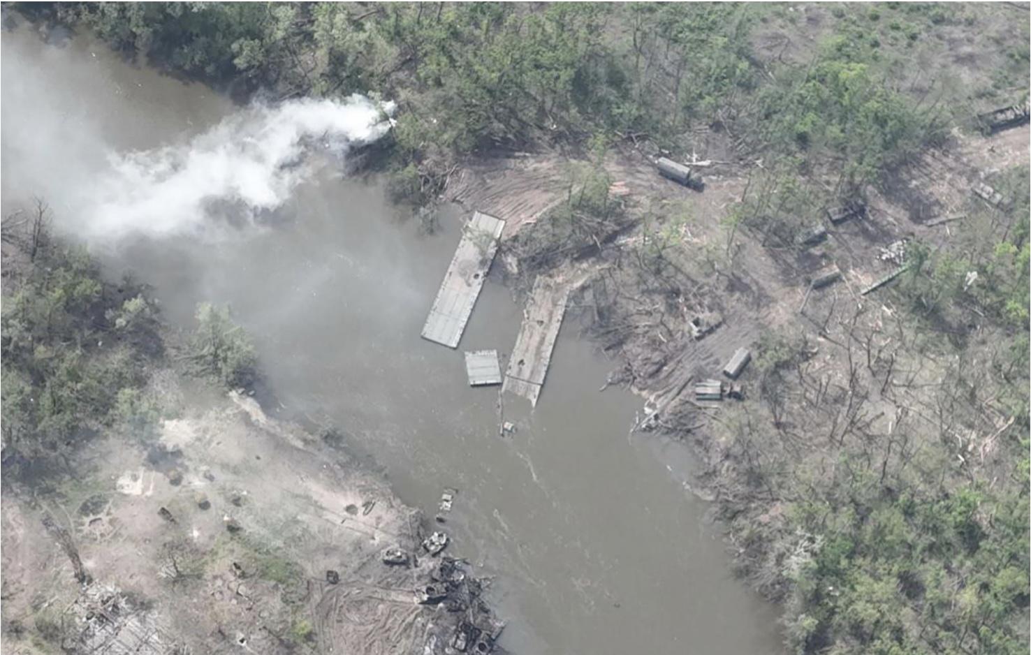 Ảnh bổ sung lan truyền trên mạng xã hội cũng do máy bay không người lái chụp. Nó cho thấy, quân Nga đang cố thiết lập cầu phao thứ hai để băng qua sông. Tuy nhiên, cây cầu này cũng bị các lực lượng Ukraine làm nổ tung.