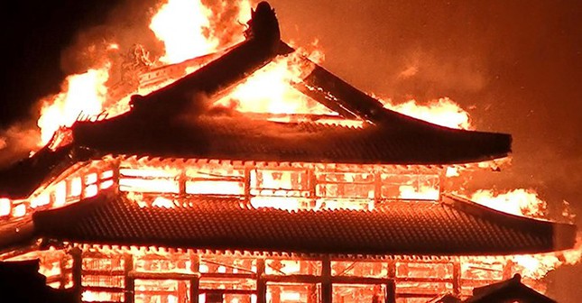 Vào sáng sớm ngày 31/10, một số tòa nhà, bao gồm Lâu đài Shuri đã bị hư hại do hỏa hoạn lớn. Lâu đài Shuri bao gồm ba tòa nhà chính, được xây dựng lại sau Thế chiến II. Công trình này được phục dựng dựa trên tài liệu chi tiết của bản gốc và được công nhận là phục dựng nguyên trạng.