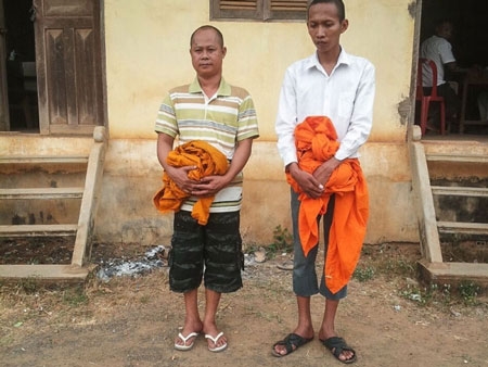 2 sư trẻ trong số 4 sư hổ mang Campuchia đã buộc phải hoàn tục sau khi bị cảnh sát bắt vì uống rượu, thác loạn với gái mại dâm (Ảnh: Campuchia Daily) |