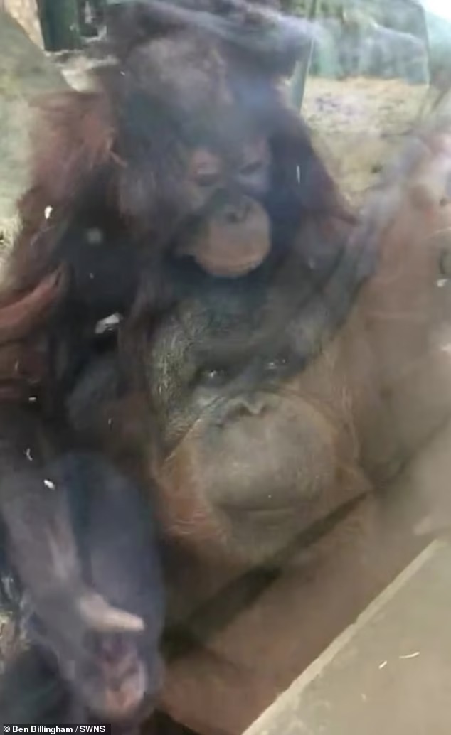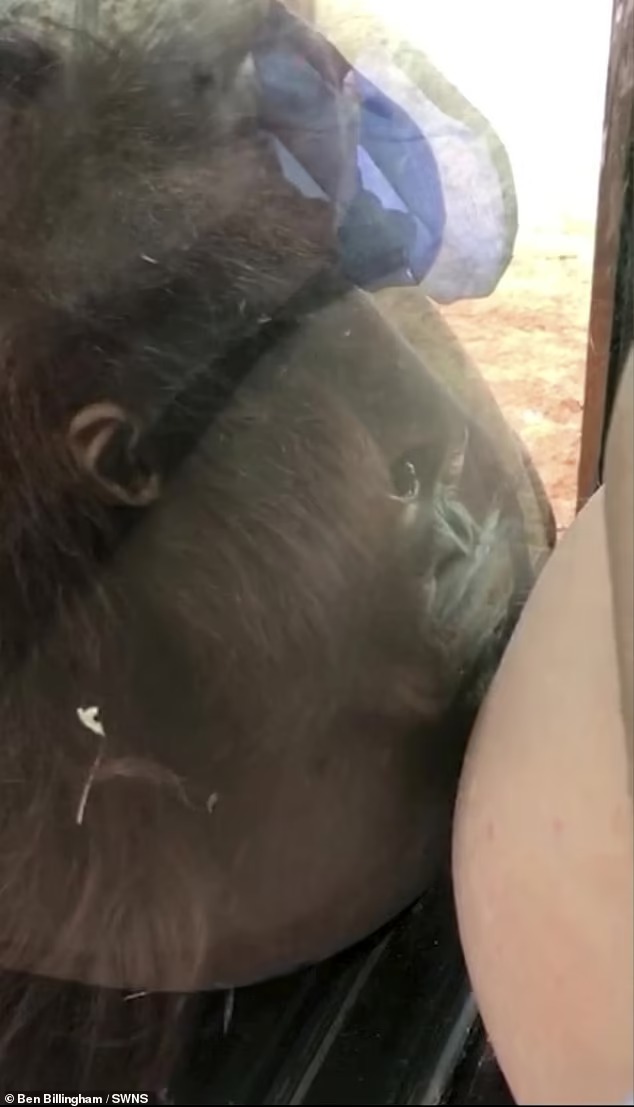 Khi Naomi tiến sát lại gần bức tường kính chắn xung quanh, một con đười ươi con đã trèo lên lưng đười ươi mẹ và bất ngờ hôn liên tục vào bụng bầu của cô.