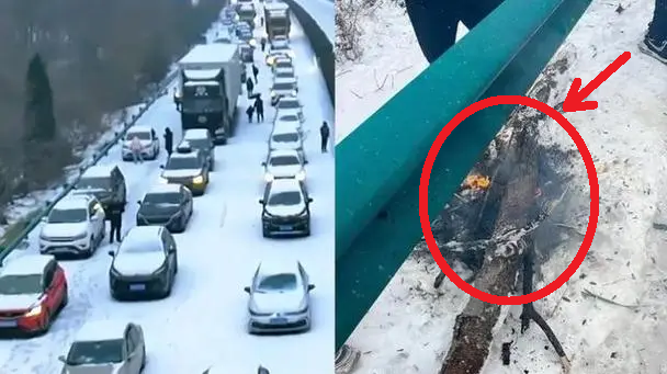 Vì sợ tốn xăng không dám bật điều hòa, nhiều người đã phải xuống xe đi nhặt củi về đốt để tự sưởi ấm.