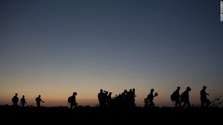 Một nhóm người tị nạn Syria đang di chuyển vào Hungary sau khi băng qua biên giới Serbia. |