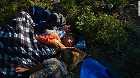 Những đứa trẻ tị nạn Syria phải nằm ngủ vạ vật ngay bên đường ray tàu hỏa tại Hungary. |