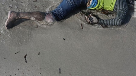 Bức ảnh thi thể bé trai người Syria Aylan Kurdi nằm trên Bodrum (Thổ Nhĩ Kỳ) khiến châu Âu chấn động. |