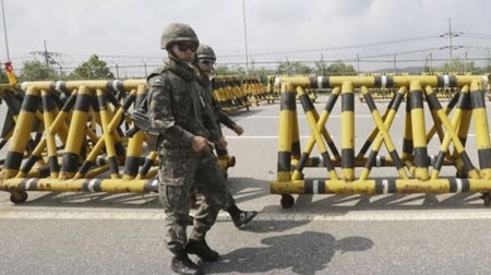 | Lính Hàn Quốc tuần tra ở khu vực biên giới. |