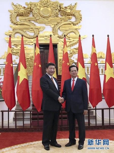 Trong cuộc hội kiến với Chủ tịch Tập Cận Bình, Thủ tướng Nguyễn Tấn Dũng nhấn mạnh, cao về vấn đề trên biển; nhất là “Thỏa thuận về những nguyên tắc cơ bản chỉ đạo giải quyết vấn đề trên biển Việt Nam - Trung Quốc” bằng các hành động thực tế, nhất quán.