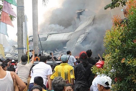 >> Máy bay quân sự rơi xuống khu dân cư ở Indonesia, ít nhất 30 người chết
