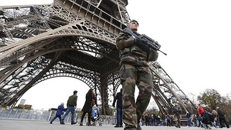 Binh sĩ Pháp tuần tra trên đường phố Paris sau vụ khủng bố kinh hoàng. Ảnh: CNBC |