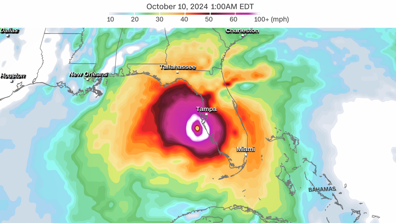 Gió từ Bão Milton có thể tấn công cả hai bên bờ biển Florida cùng lúc. Nhà khí tượng học Elisa Raffa của CNN giải thích nguyên nhân đằng sau những biến đổi lớn siêu tốc của cơn bão được dự báo là tồi tệ nhất năm 2024.