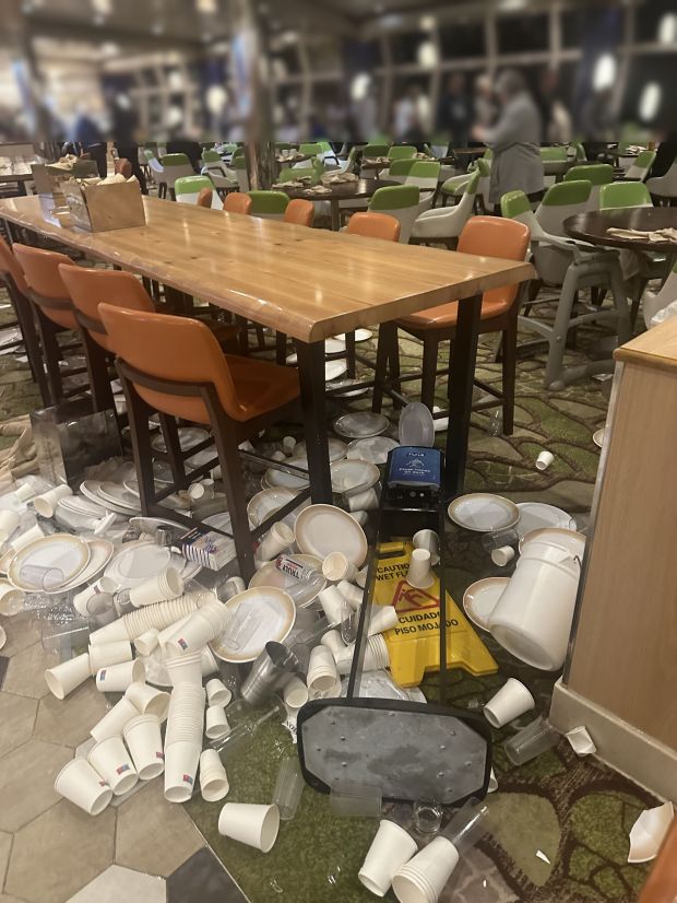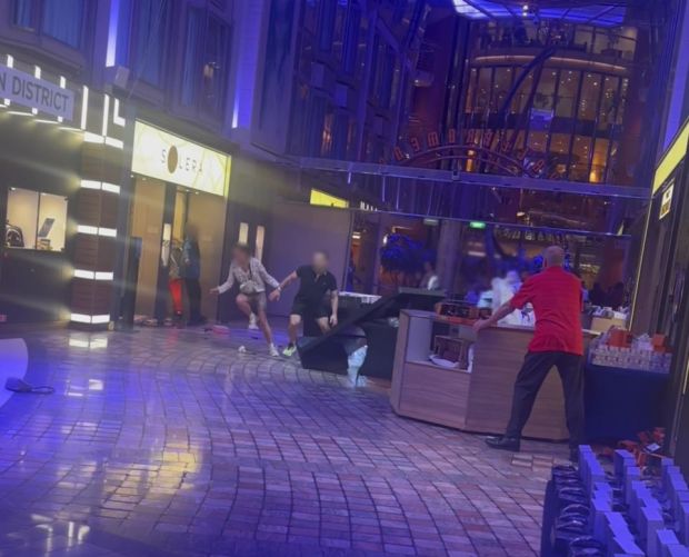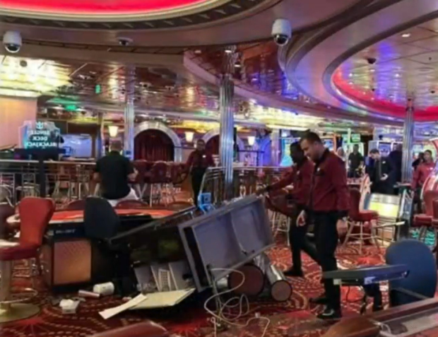 Một số cửa hàng bên trong con tàu bị tàn phá với tất cả các sản phẩm nằm la liệt trên mặt đất. Hộp đựng trang sức và kính râm bị văng tứ tung khắp con tàu trong những khoảnh khắc kinh hoàng. Video từ phía sau quầy bar trong một nhà hàng của con tàu thậm chí còn cho thấy những cơn sóng đã khiến chai lọ thủy tinh bay lên. Rượu đã vỡ ra khỏi thùng chứa và rơi xuống đất. Thức ăn chưa ăn cũng vương vãi trên sàn.