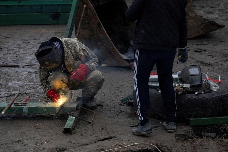 Tại công trường lầy lội ở một khu dân cư thuộc Kiev, các công nhân và thợ hàn của công ty bất động sản KAN đang tích cực làm việc. Thay vì xây nhà và các văn phòng, họ đang chế tạo những rào chắn chống xe tăng khổng lồ bằng kim loại, gọi nôm na là "nhím gai", cùng các hàng rào thép gai nhỏ hơn nhằm mục đích ngăn chặn những phương tiện có bánh, kể cả xe tải.