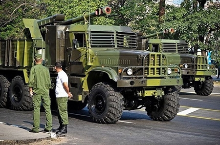 Lựu pháo D-30 cỡ 122 mm của Cuba lắp trên thùng xe tải hạng nặng |
